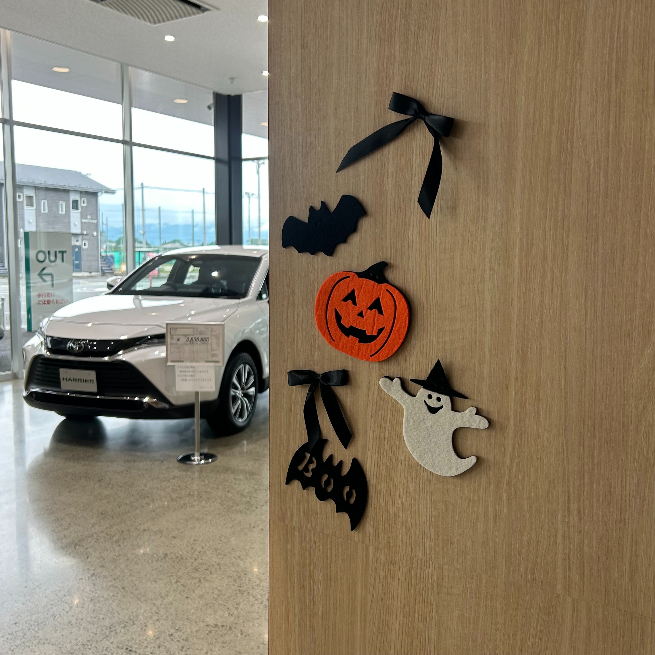 ショールーム内のいたるところにオバケやカボチャたちが隠れているので