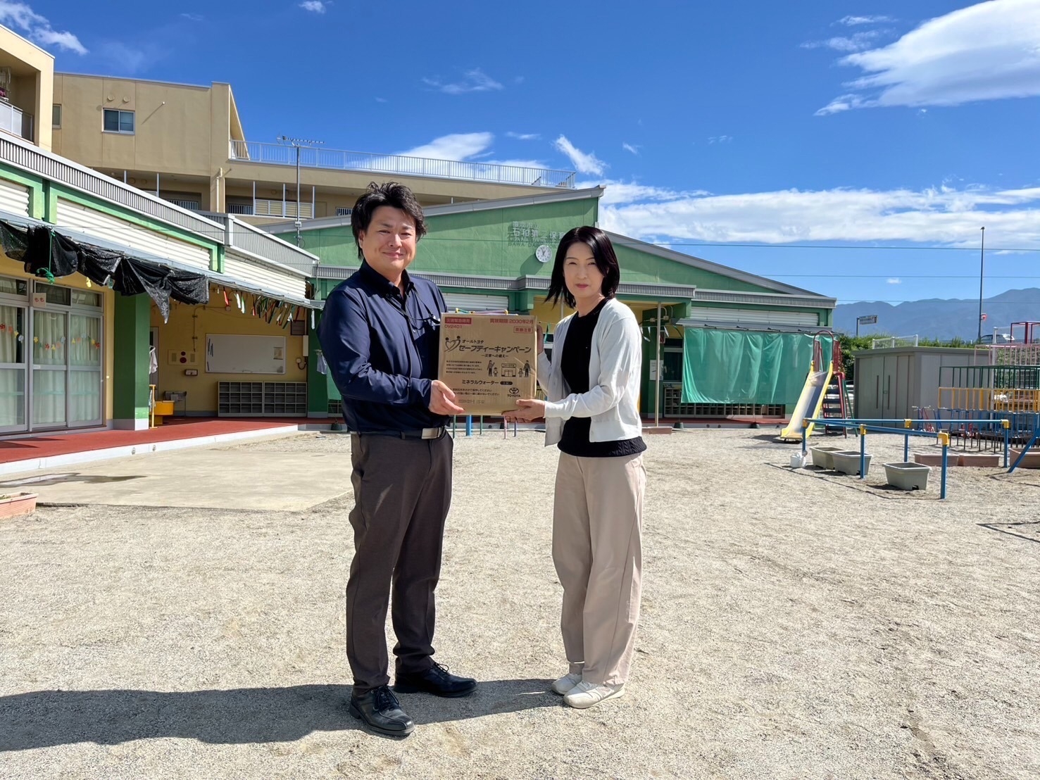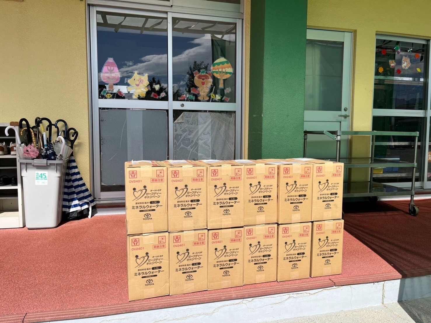 ということで、石和第二保育所様に備蓄水の寄贈をさせていただきました。