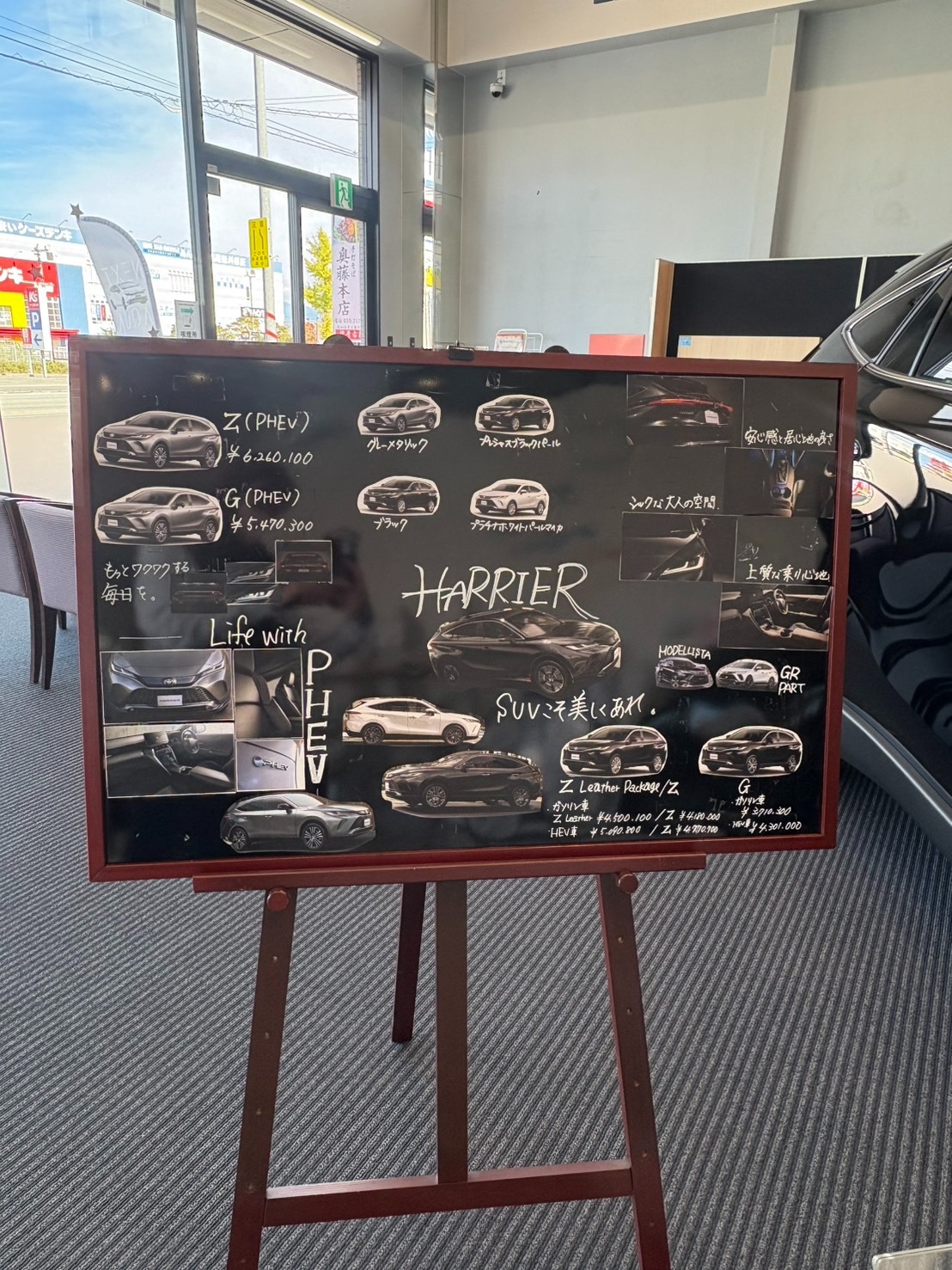ハリアーをより分かりやすく知ってもらうために 簡単ですがブラックボードに魅力をまとめさせていただきました😌