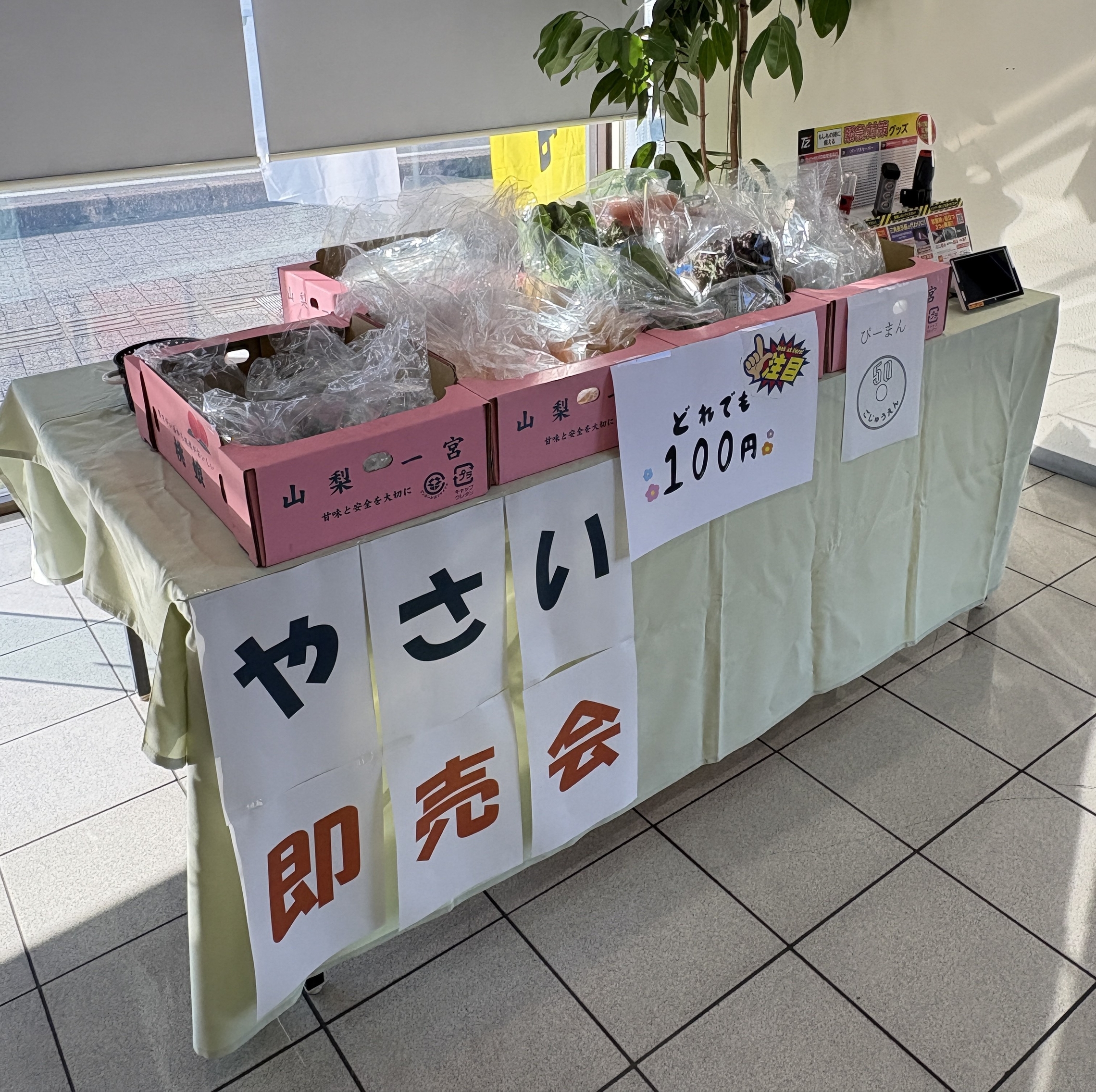↑店長お手製のかわいいポップと100円均一の野菜たち